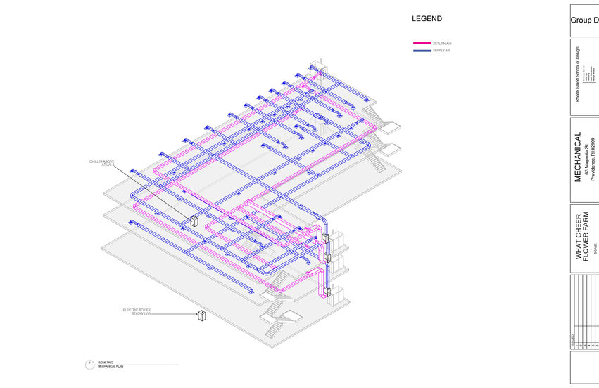Watcheer Flower Farm is located at 63 Magnolia Street, Providence, Rhode Island. This project was undertaken in the fall of 2023 as part of the Integrated Building Systems class (ARCH-2178). The client aims to transform their current structure into a three-story building, repurposing it as an agricultural farm for academic use. The building's layout is designed to include a loading dock adjacent to the side street, classrooms, STEM processing studios, conference rooms, a lecture hall, faculty offices, as well as a café, patio, and staff room for the board.